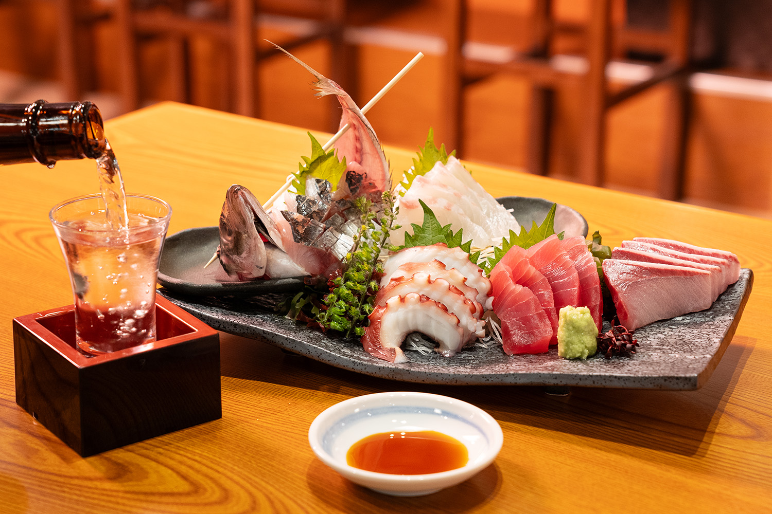 ・刺身盛り合わせ「大漁盛り〈八種〉」通常一人前1500円を半額の750円で提供