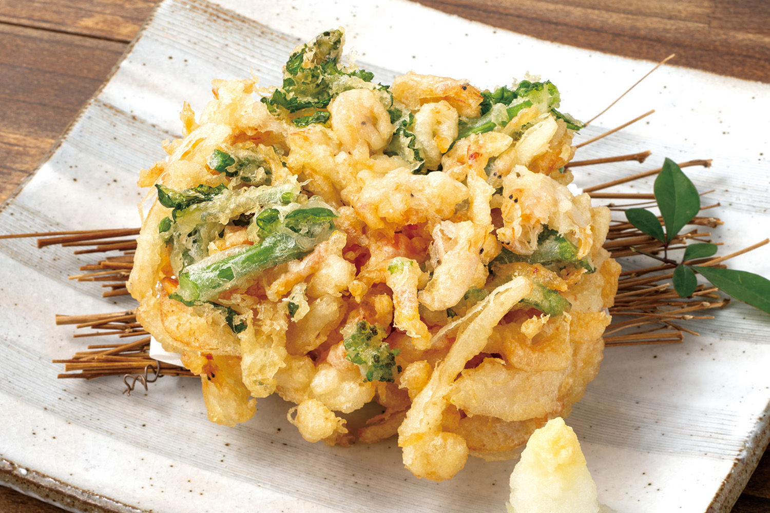 加えて、「桜海老と菜の花のかき揚げ」(550円)も春らしさ感じる一品。菜の花の爽やかな香りとほろ苦さに、桜海老の甘みが重なります。この他、卓上コンロで焼く「焼きそら豆」(650円)、「ほたるいかとうどの酢味噌和え」(580円)、「いいだこと竹の子のさっと煮」(650円)、「新玉ねぎスライス 生わかめぽん酢」(390円)、「アスパラベーコンフライ」(650円)の全9品を揃えます。