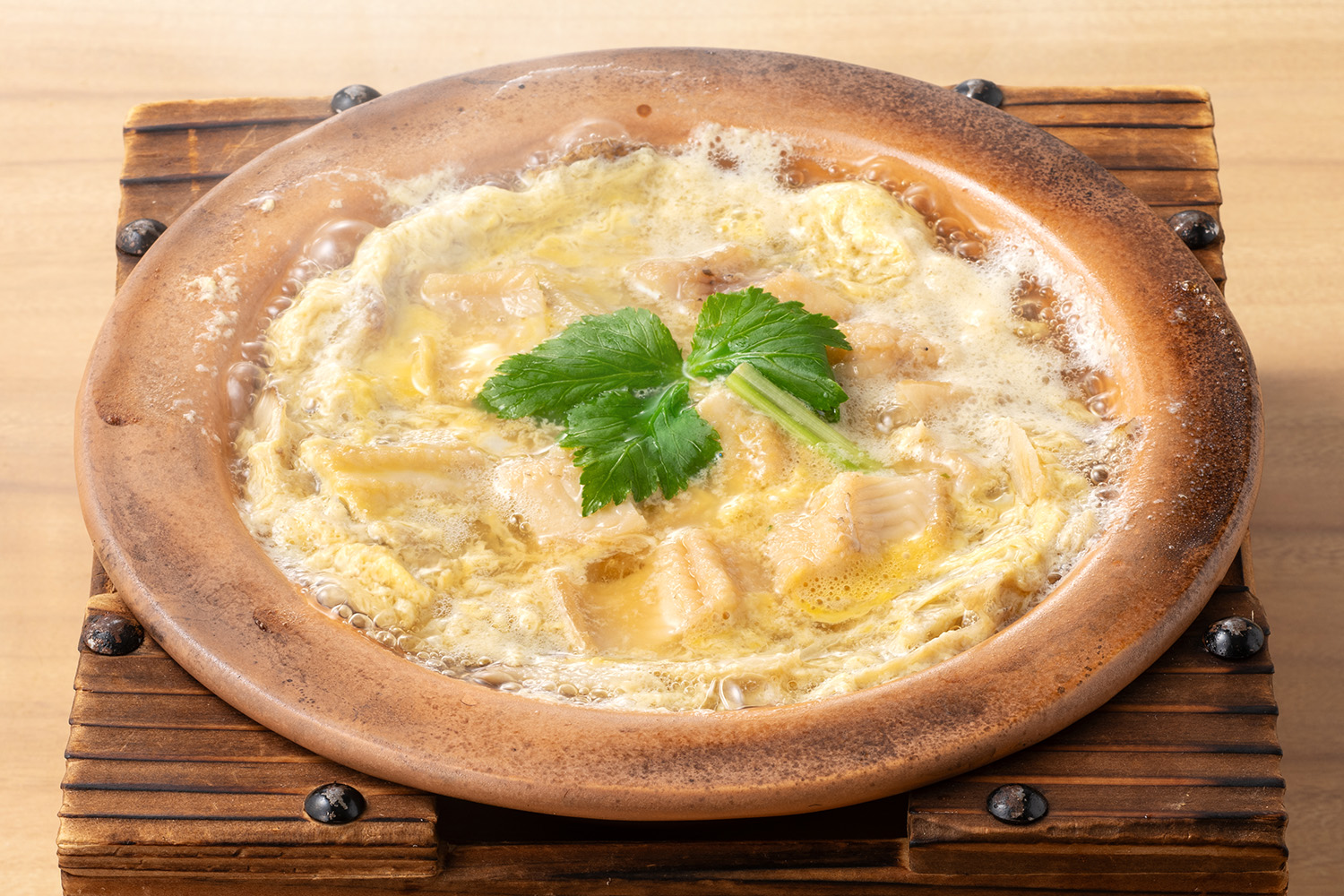 初夏の野菜も板前の技で調理します。柔らかく香り豊かな新ごぼうは、ふんわり煮た穴子とともに卵でとじ、「新ごぼうと穴子の柳川鍋(650円)」に。穴子の旨味の中に、新ごぼうの香りと食感がアクセントになります。
