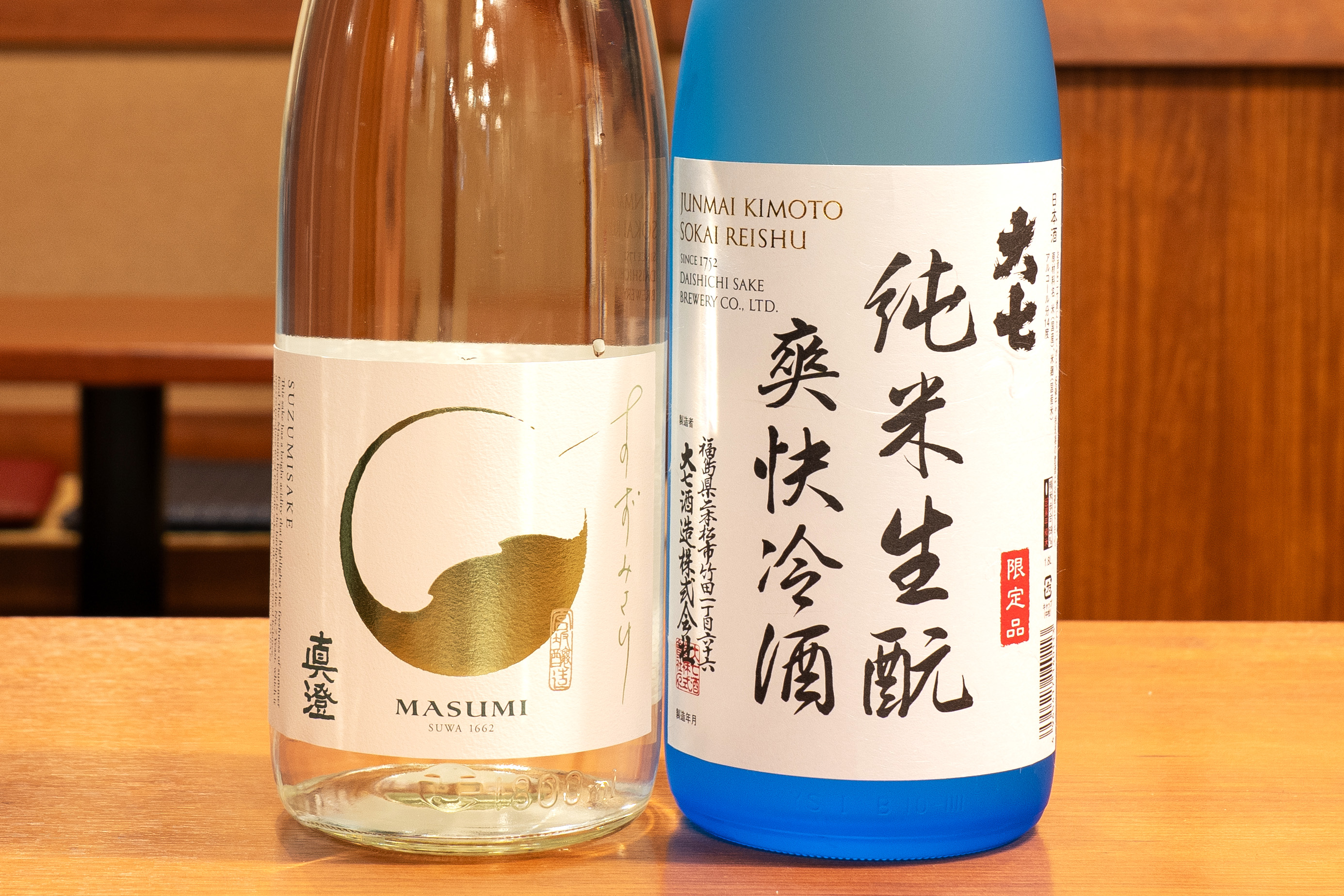 『大庄水産』は、全国の蔵元より直送される日本酒でも初夏を盛り上げます。5月は、初夏の限定メニューに合う2銘柄を用意。長野県・宮坂醸造「真澄 純米吟醸 すずみさけ」(一合850円)は、ほのかな酸味と爽やかな口当たりが特徴。「かつおレアガーリックステーキ」や「真いわしフライ」と合わせれば、後味を軽やかにまとめてくれます。福島県・大七酒造「大七 純米生酛 爽快冷酒」(一合750円)は、湧き水のような清涼感と豊かで厚みのある味わい。「真いわしの生姜煮」や「ほたるいか昆布焼き」など、素材の旨味をしっかりと引き立てます。