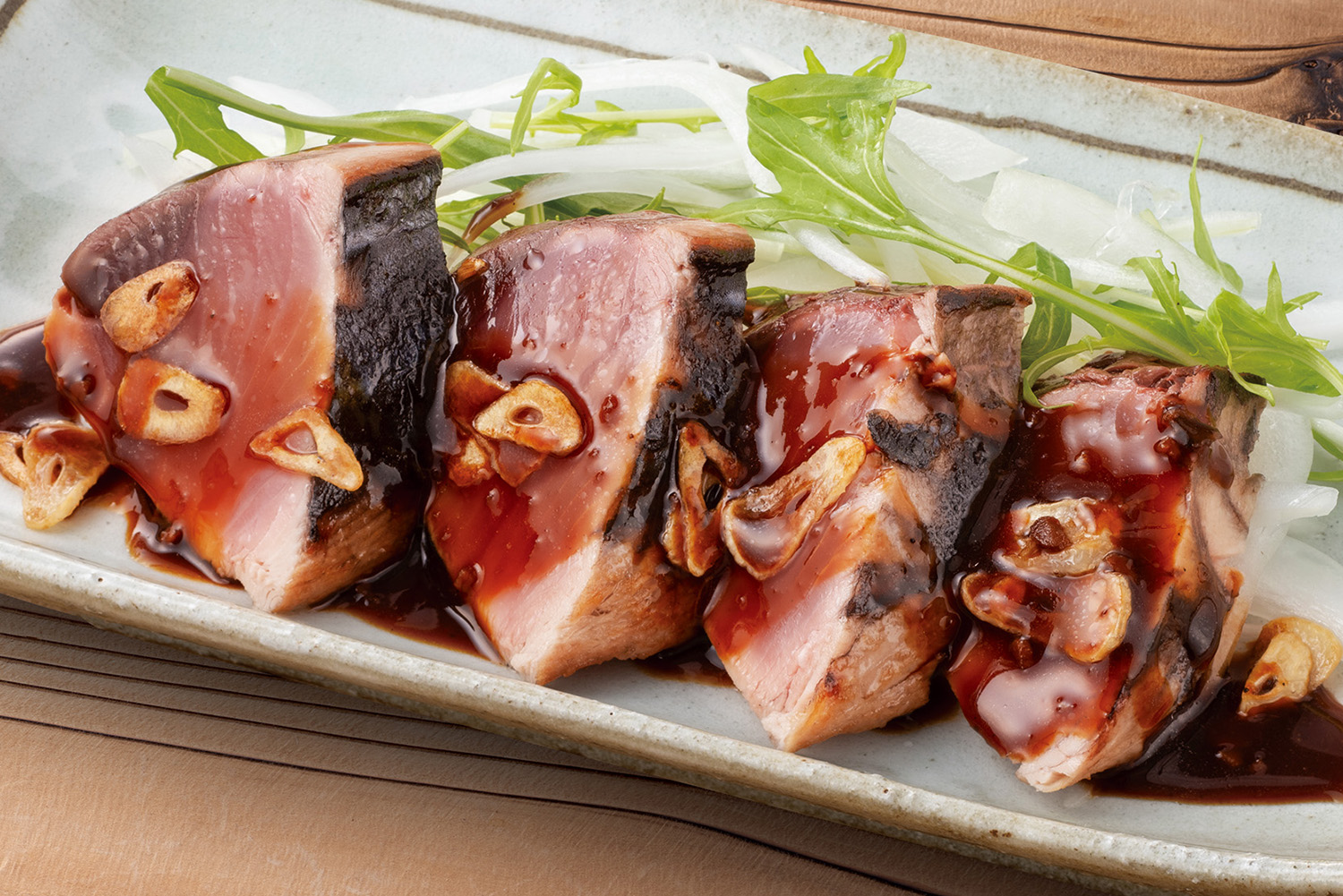 今が食べどきの真イワシと初カツオも必見。真イワシは、サクッと揚げて脂の旨みを閉じ込めた「真いわしフライ」(一尾450円)と、生姜の香りが食欲をそそる「真いわしの生姜煮」(550円)を用意します。