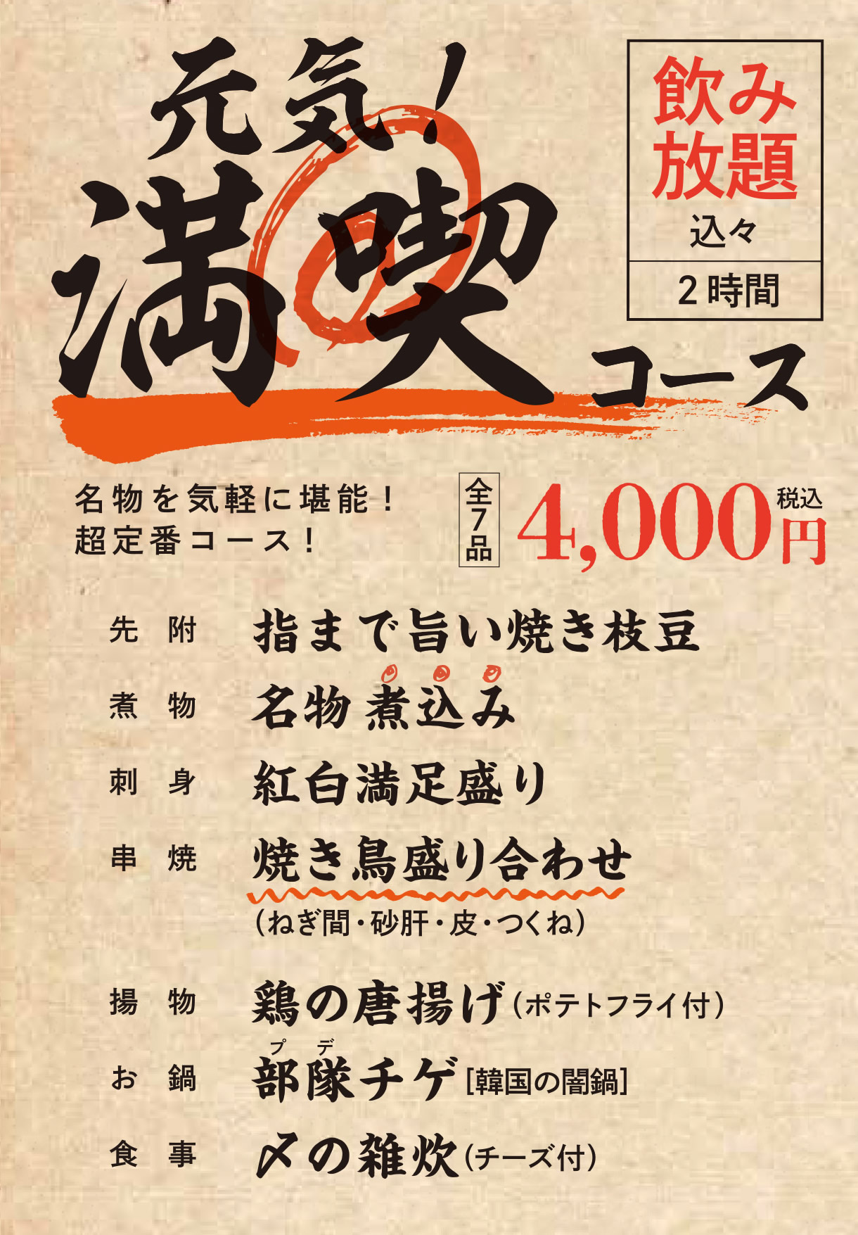 【元気!満喫コース】2時間飲み放題付
