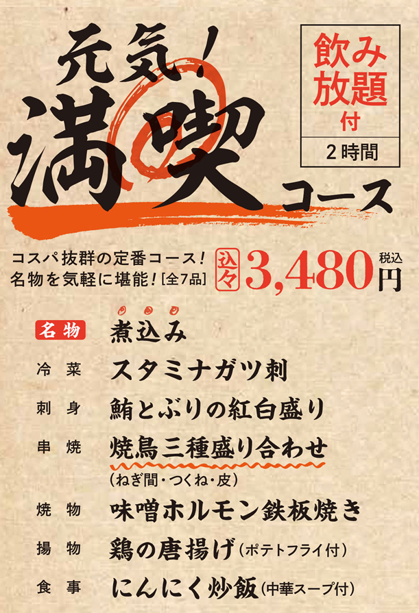 【3/1~】元気!満喫コース(全7品・2時間飲み放題付)