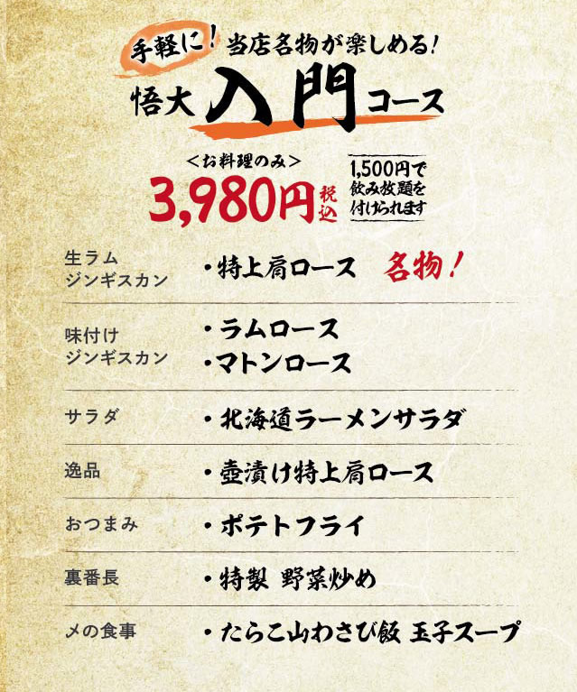 【3/1~】>手軽に!当店名物が楽しめる!【悟大入門コース】3980円