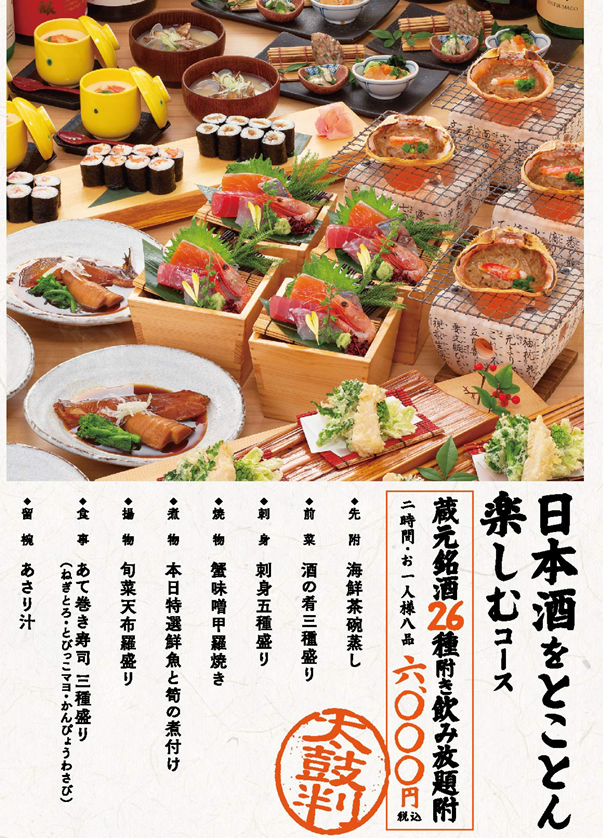 【3/1~】【日本酒をとことん楽しむコース】(蔵元銘酒26種含む2時間飲み放題付)