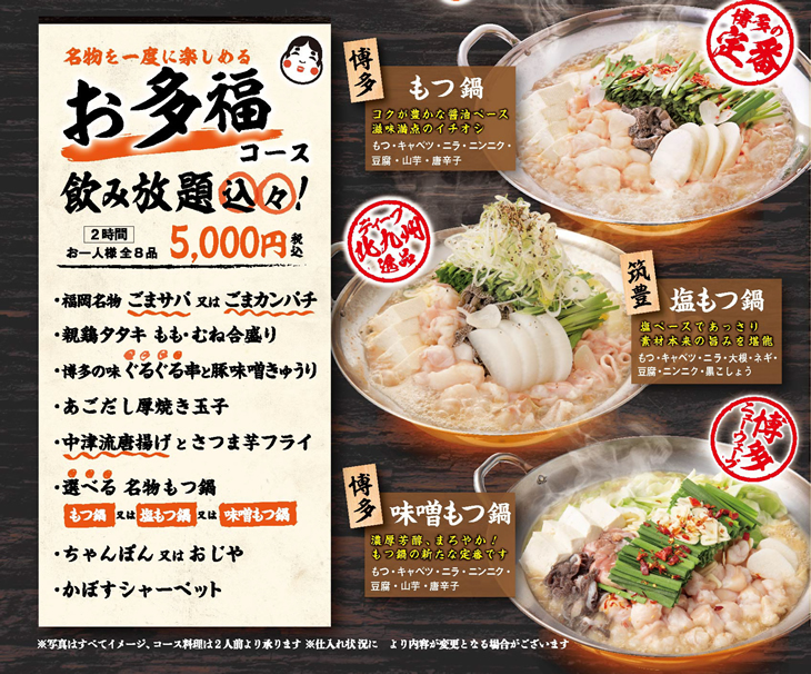 【3/1~】お多福コース(全8品・2時間飲み放題付)