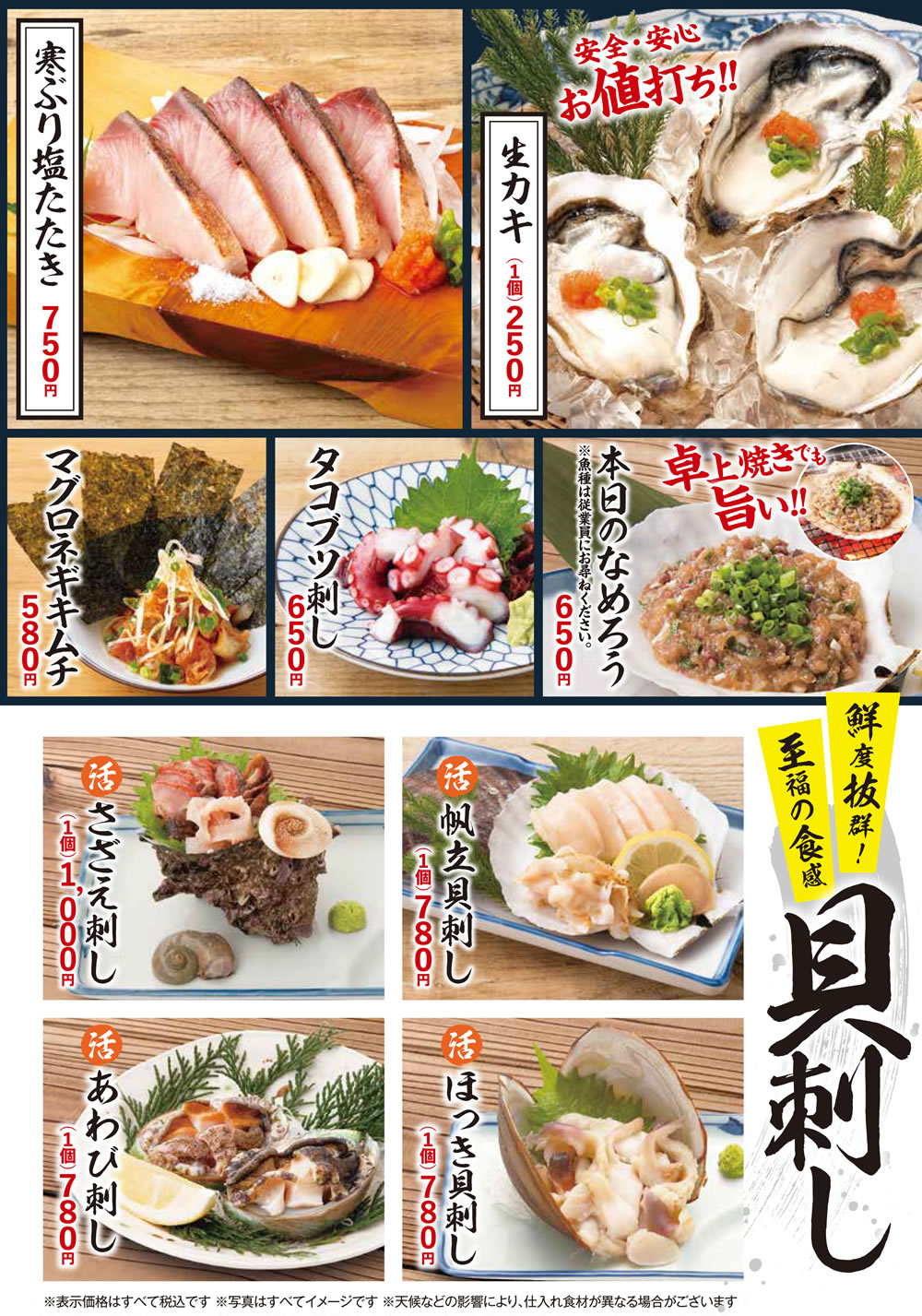 ※天候などの影響により、仕入れ食材が異なる場合がございます。
