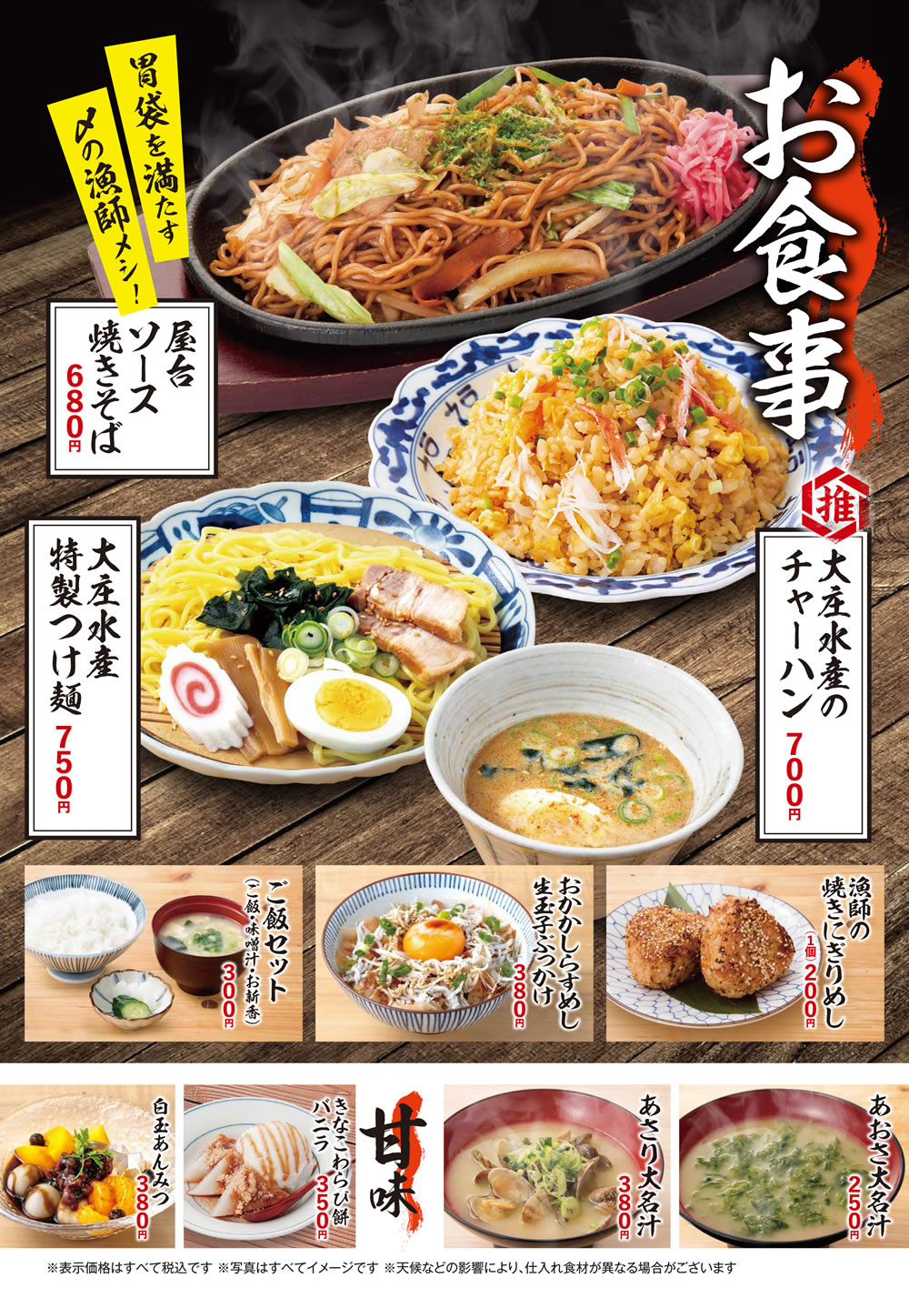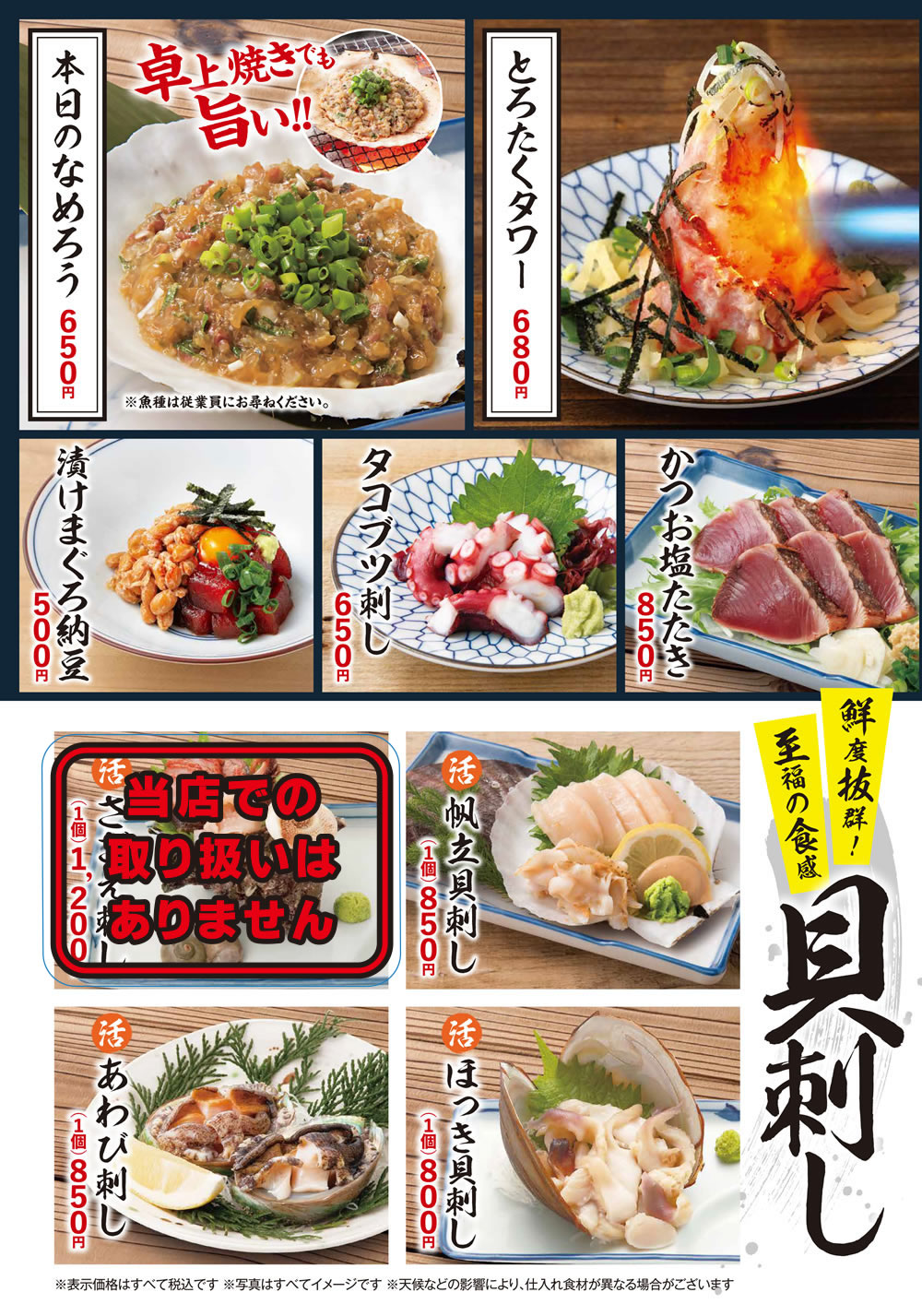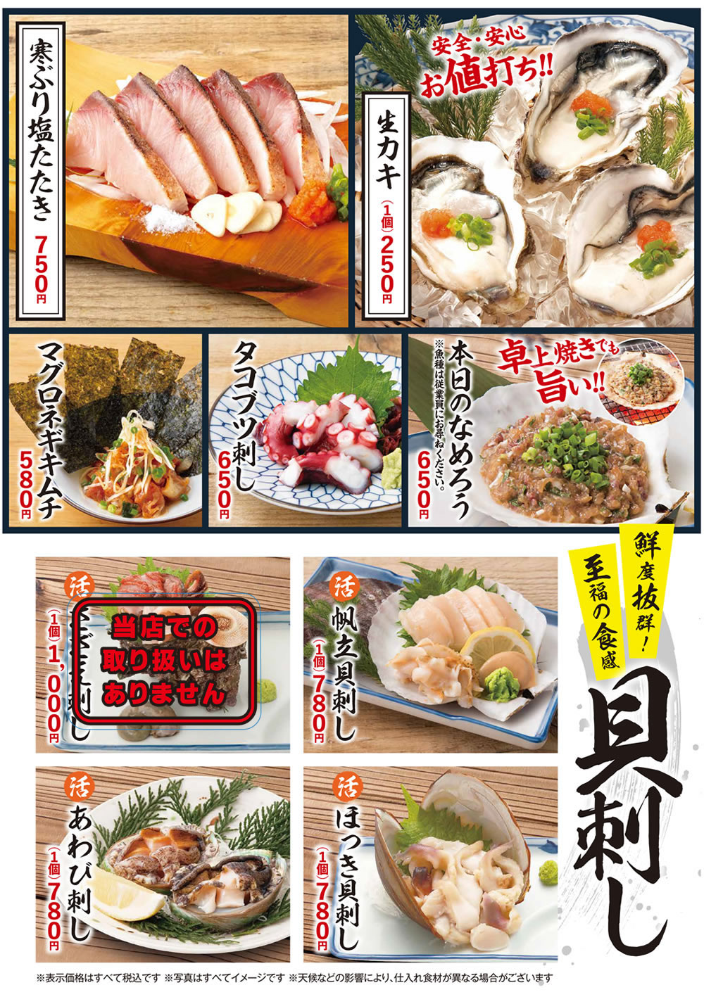 ※天候などの影響により、仕入れ食材が異なる場合がございます。