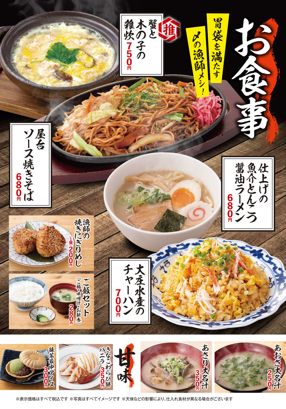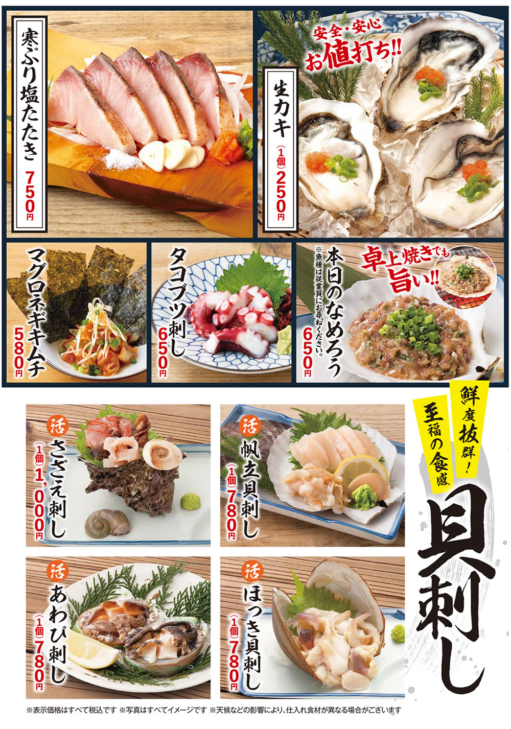 ※天候などの影響により、仕入れ食材が異なる場合がございます。