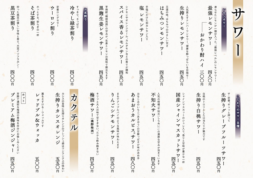 【公式】日本海庄や(サッポロ版)グランドメニューご案内