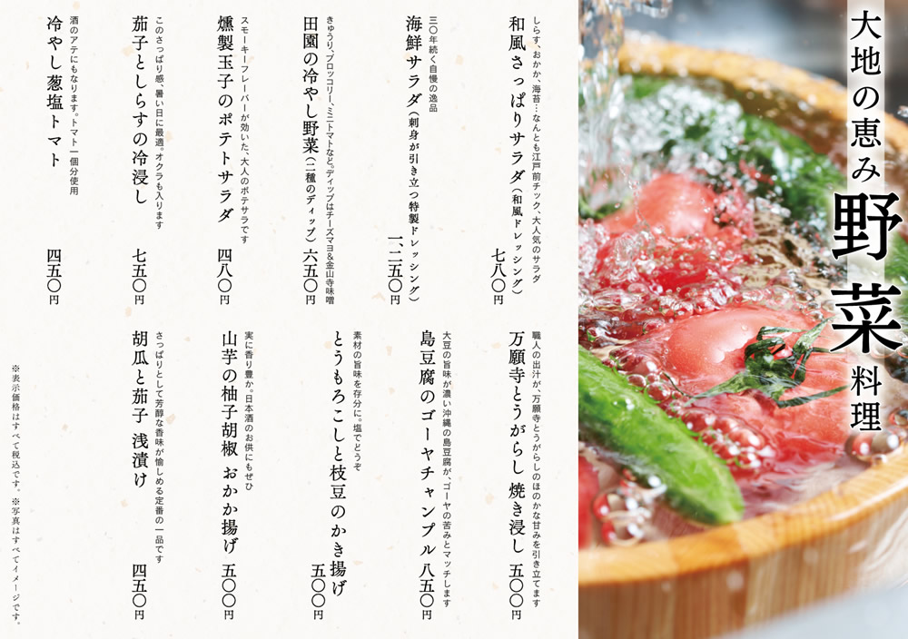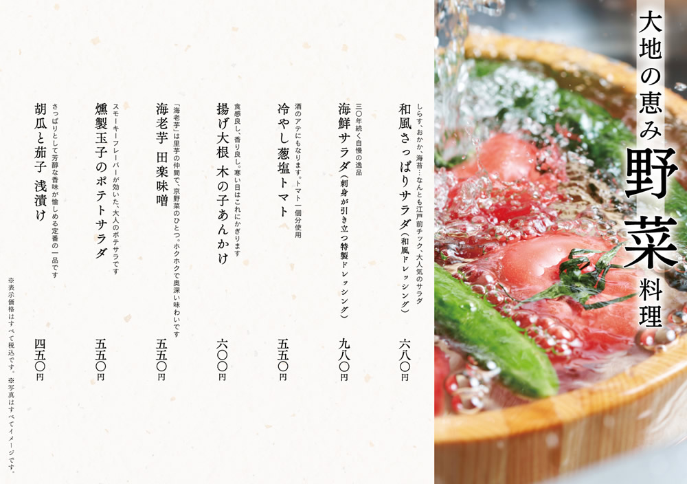 ※天候などの影響により、仕入れ食材が異なる場合がございます。