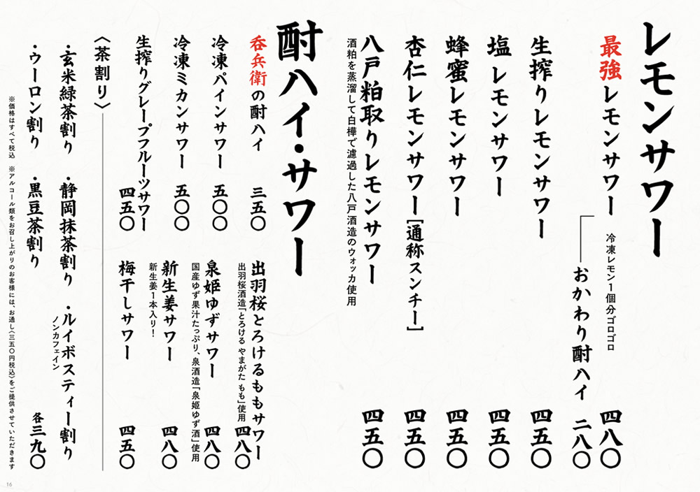 【公式】酒処 呑兵衛グランドメニューご案内