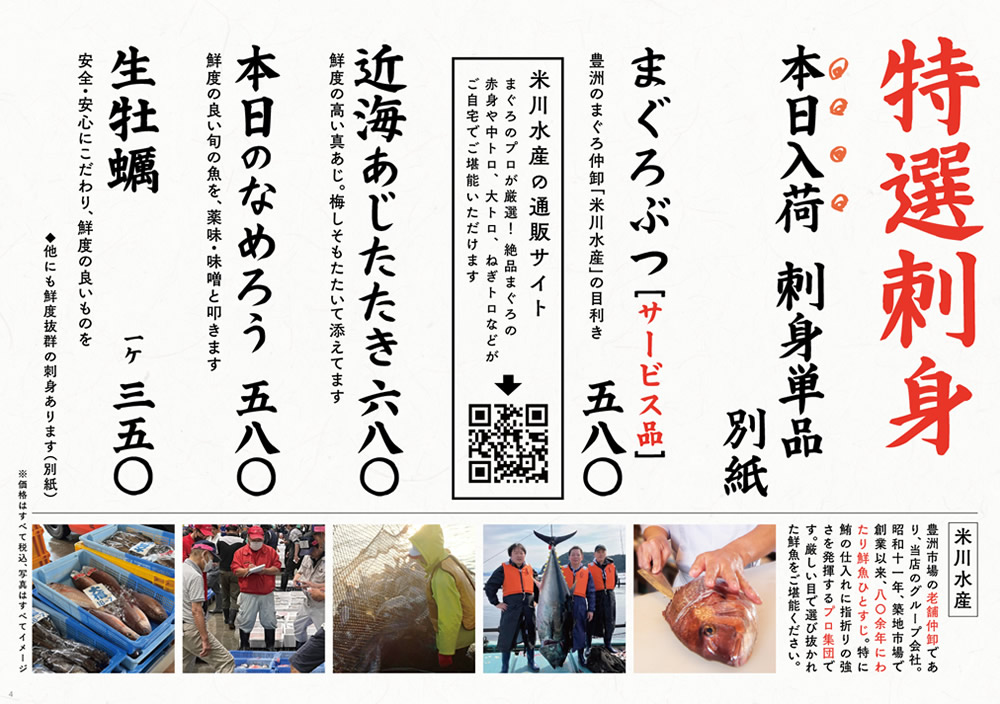 ※天候などの影響により、仕入れ食材が異なる場合がございます。