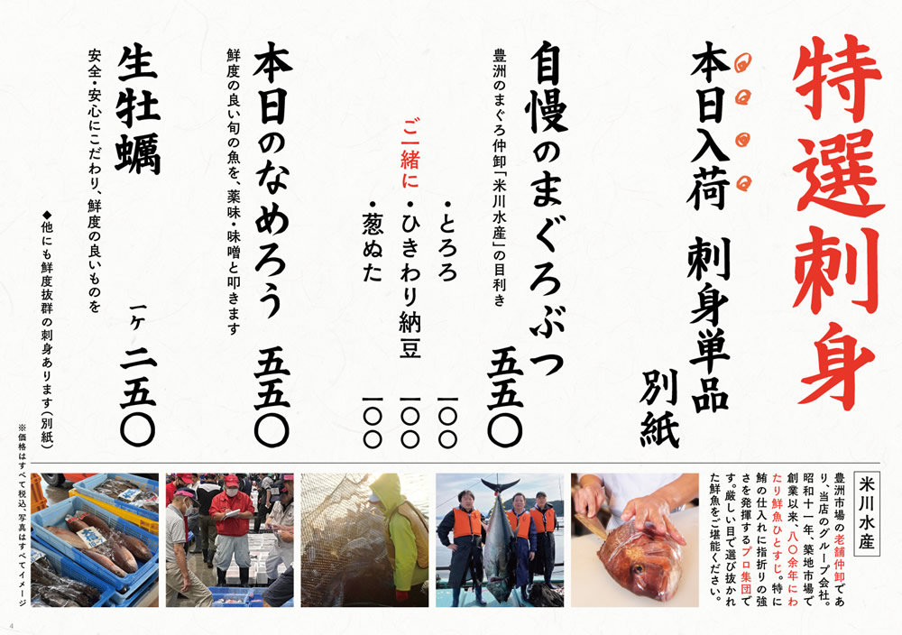 ※天候などの影響により、仕入れ食材が異なる場合がございます。