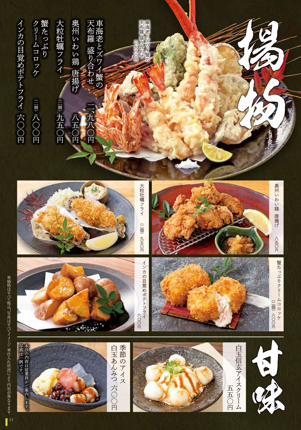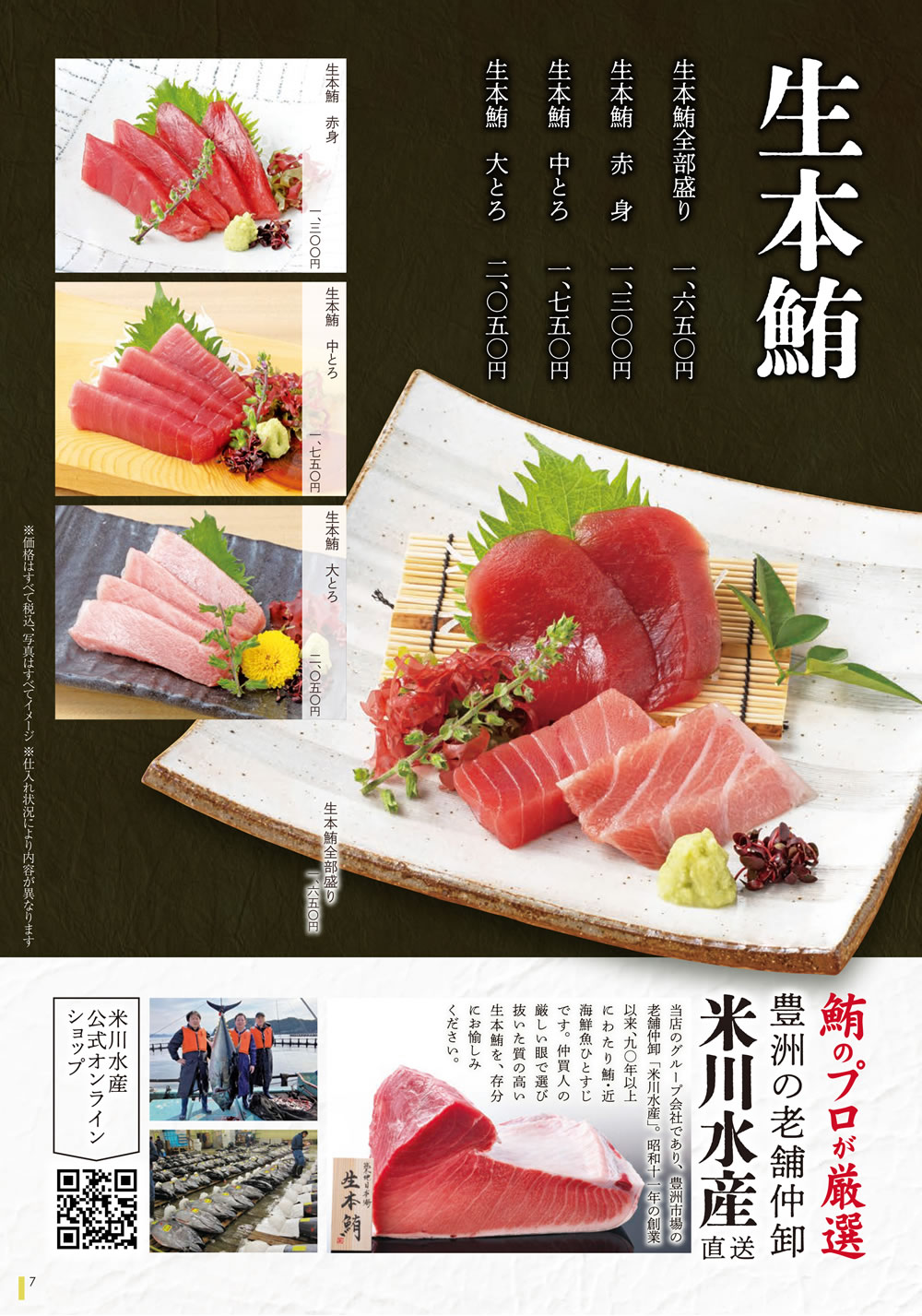 ※天候などの影響により、仕入れ食材が異なる場合がございます。