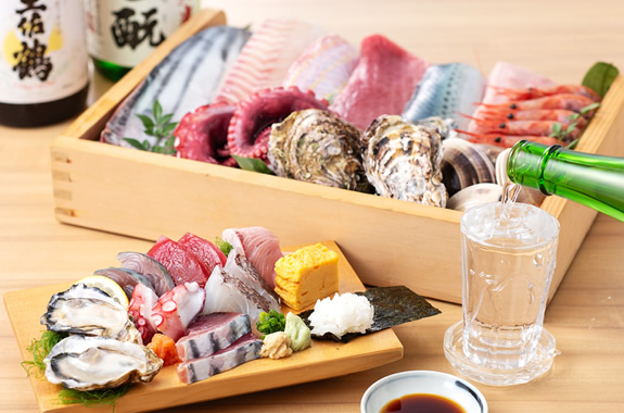 三四味と書いて「さしみや」。その名の通り刺身をはじめ、とびきり新鮮で旨い海の幸を取り揃えています。また、食材の出回り始める時期の「走り」、一番の実りを迎える「盛り」、間もなく終わる「名残」の三つの旬と、四季の味にこだわり一番旨い食材を吟味。熟練の板前が、ベテランの仲買人をも唸らす本物の味わいに調理して提供します。