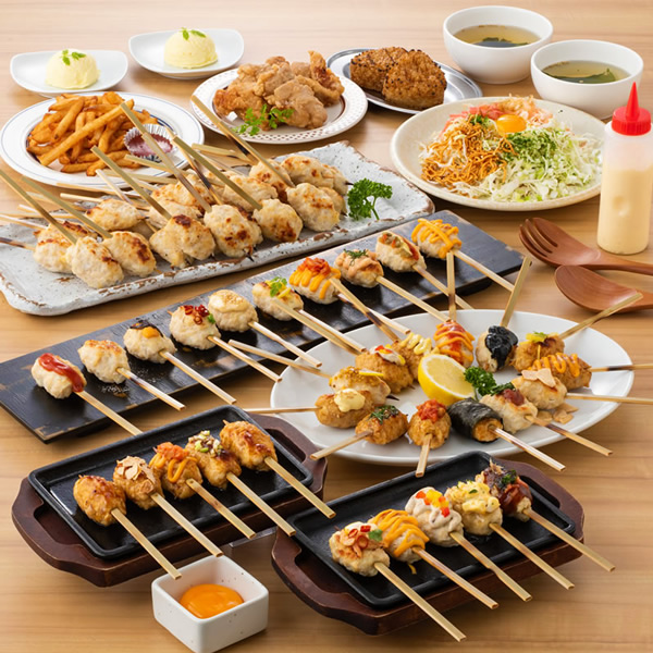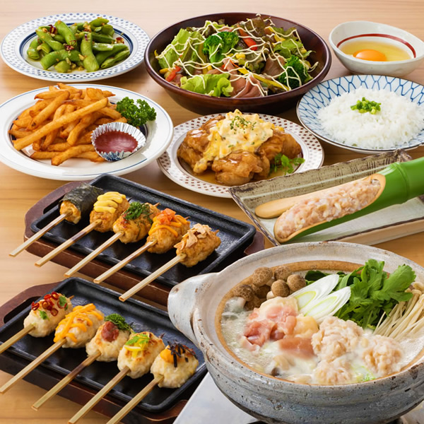 【当日注文OK!】ふわふわつくね64種が食べ放題なんて夢のよう!その他下町もんじゃサラダやとまらん棒などを含めた大満足の全5品のコース♪席にはレモンサワーサーバーが完備で注ぎ放題で飲み放題です!オリジナルシロップで自由自在にアレンジができます♪ソフトドリンクも飲み放題無料!!