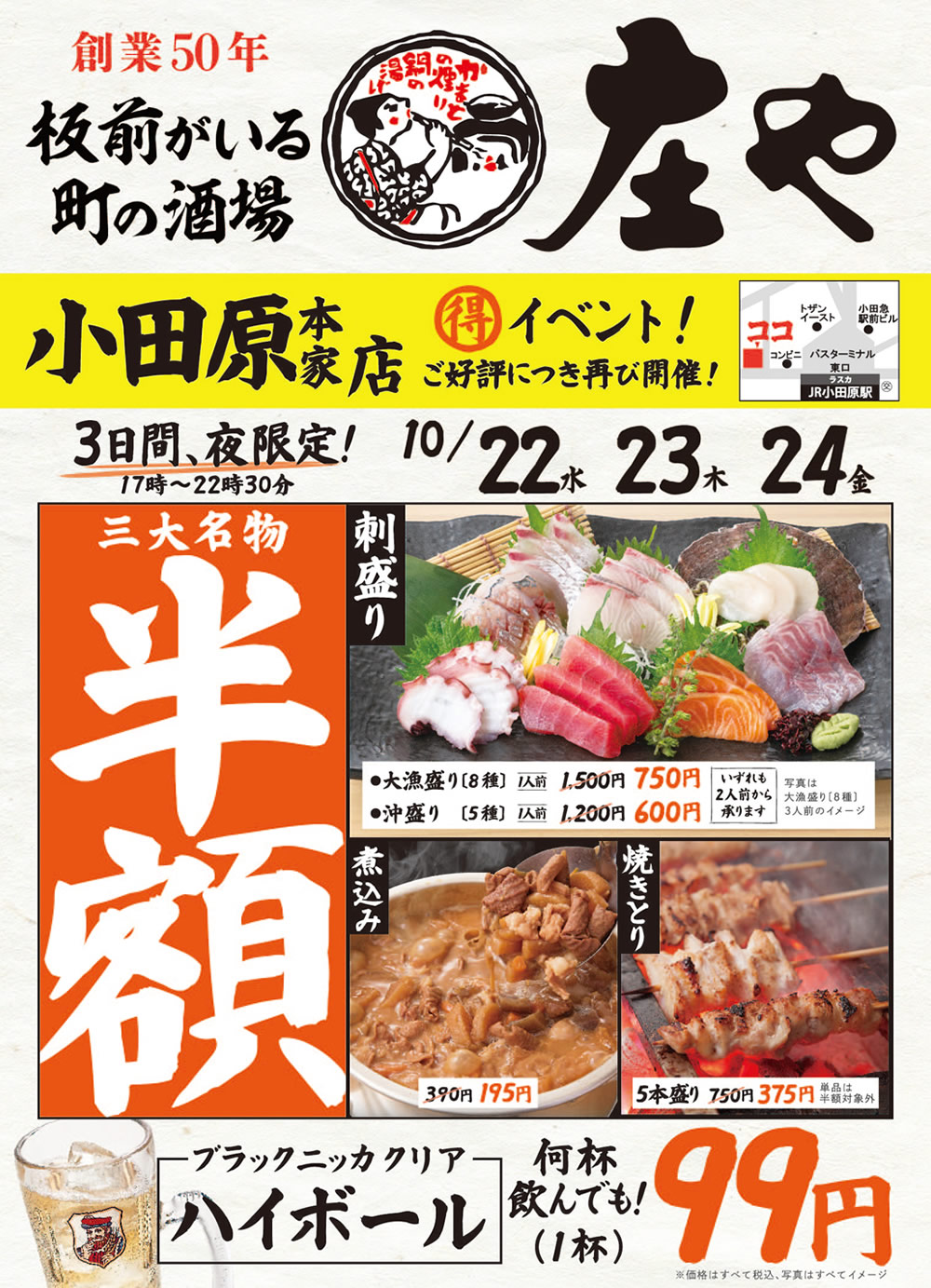 【庄や 小田原本家店】三大名物 半額イベント開催!