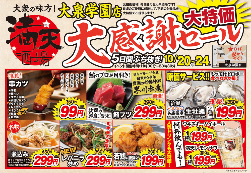 【満天酒場 大泉学園店】5日間ぶち抜き!大感謝セール開催!