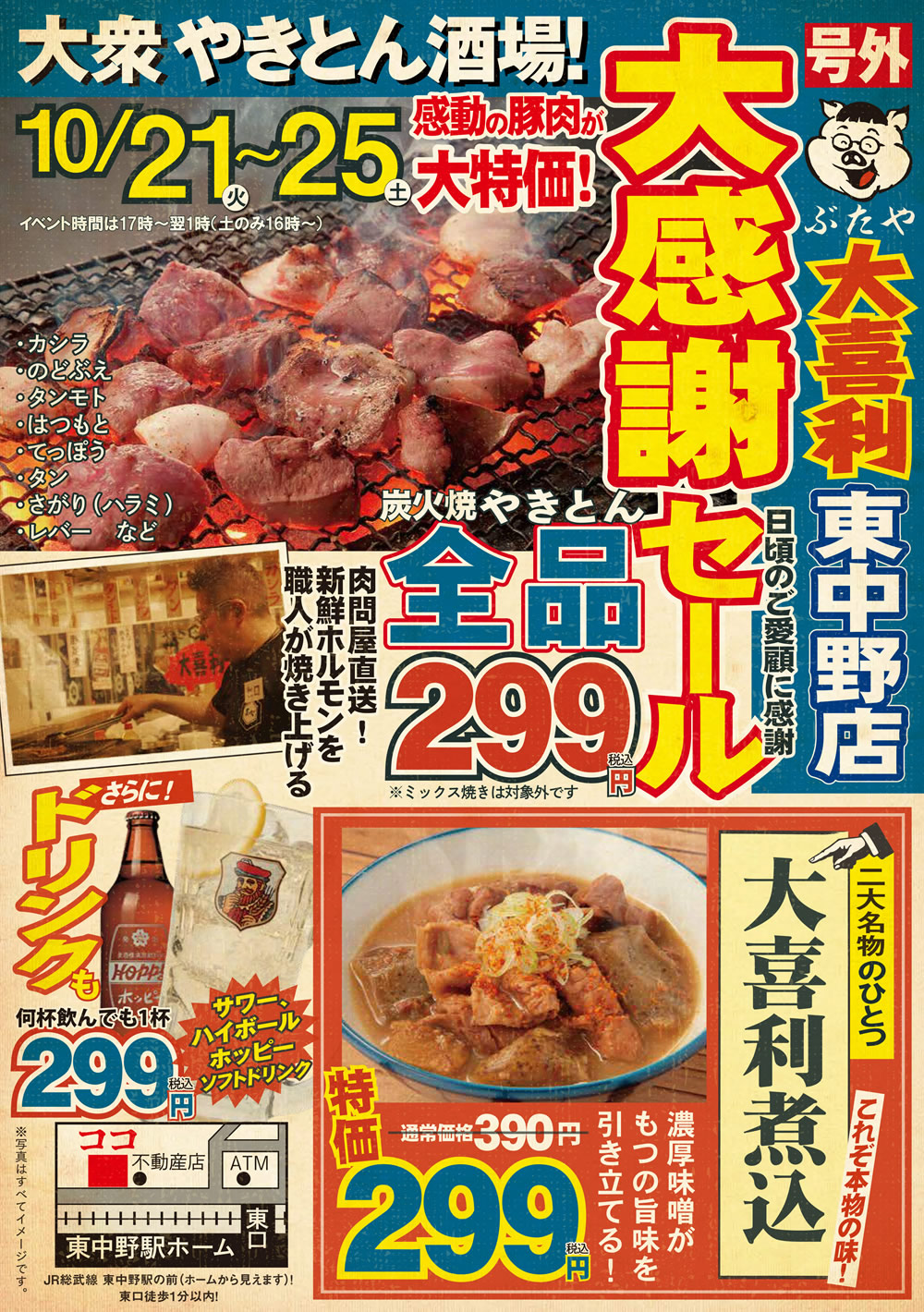 【大喜利 東中野店】にて「大感謝セール」開催!