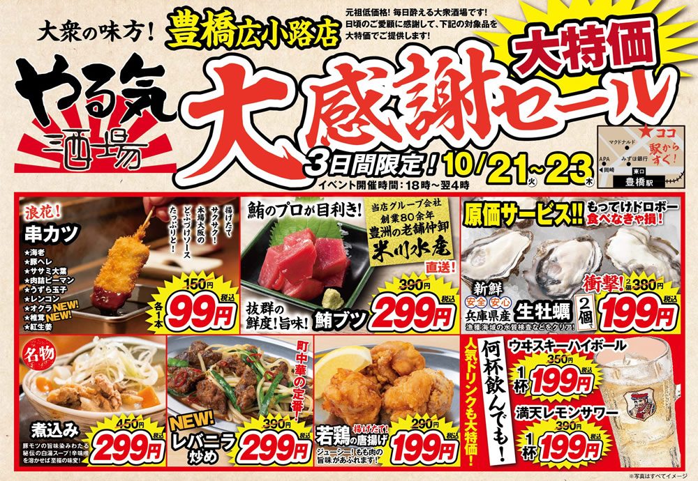【やる気酒場 豊橋広小路店】にて大感謝セール開催!