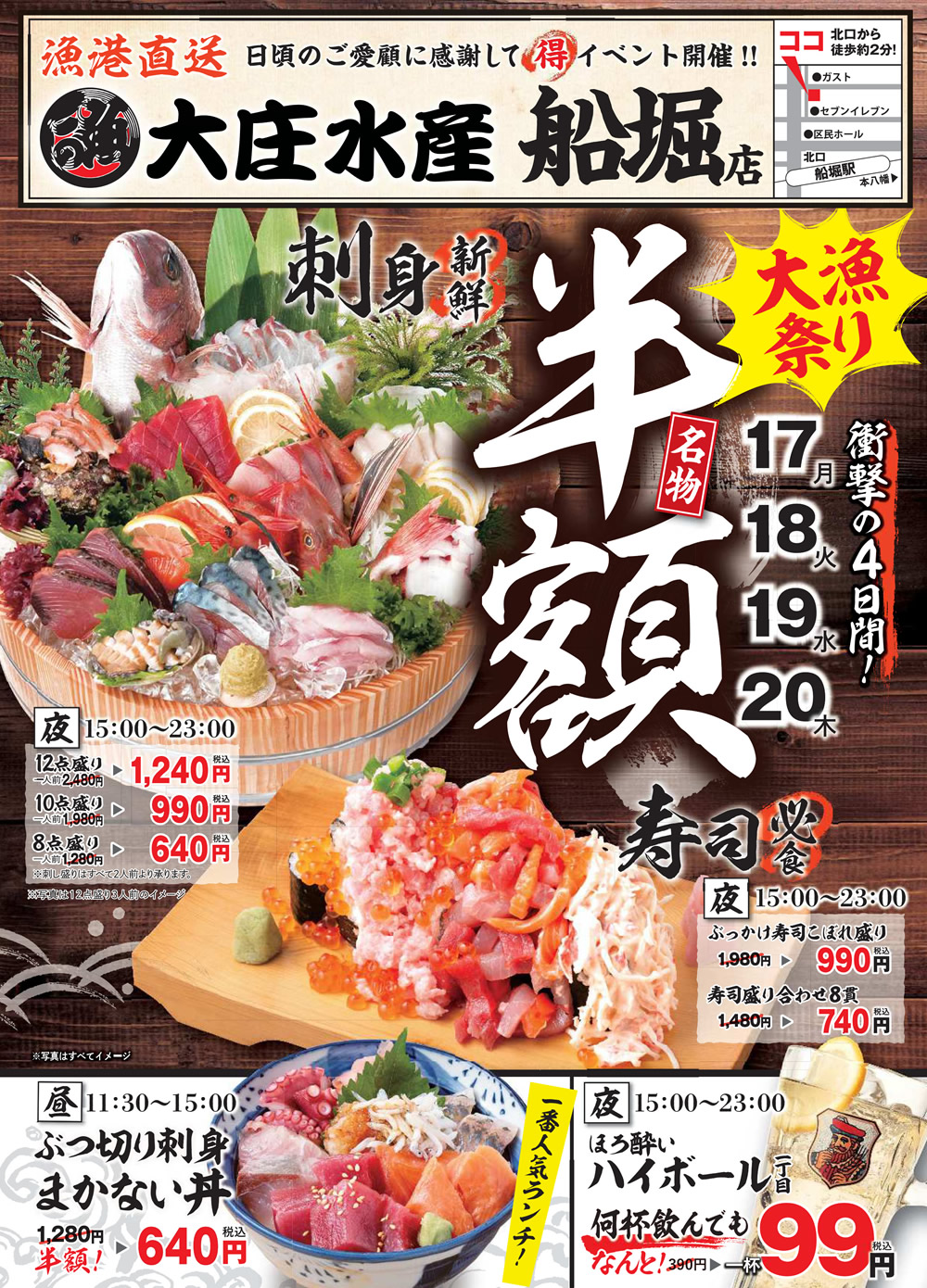 11/17より『大庄水産 船堀店』にて4日間限定”名物料理 半額”イベント開催!