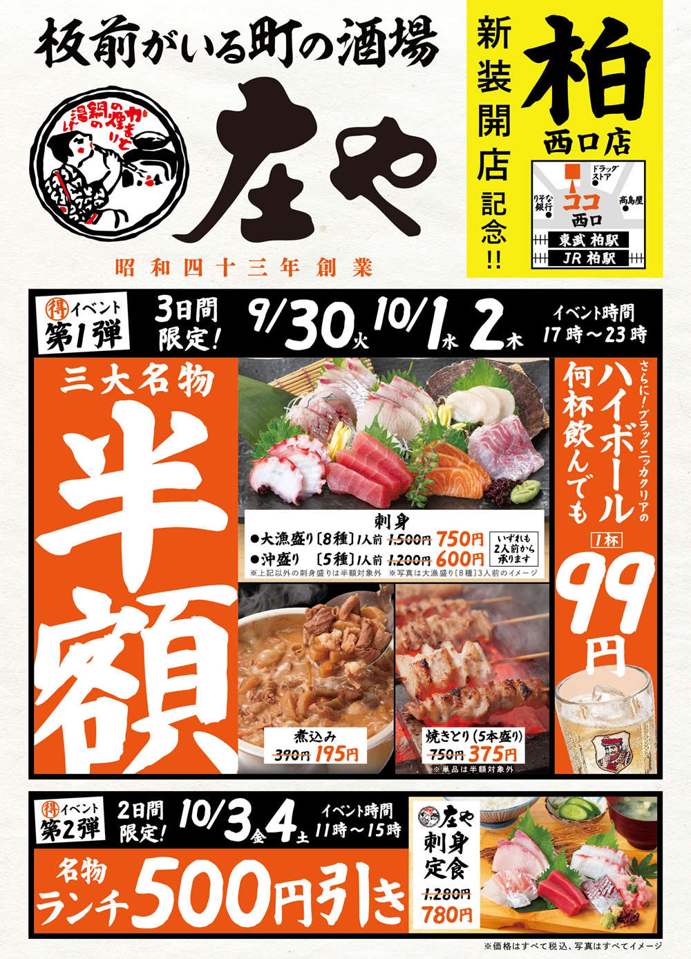 『庄や 柏西口店』9月30日(火)17時より新装開店!イベント実施