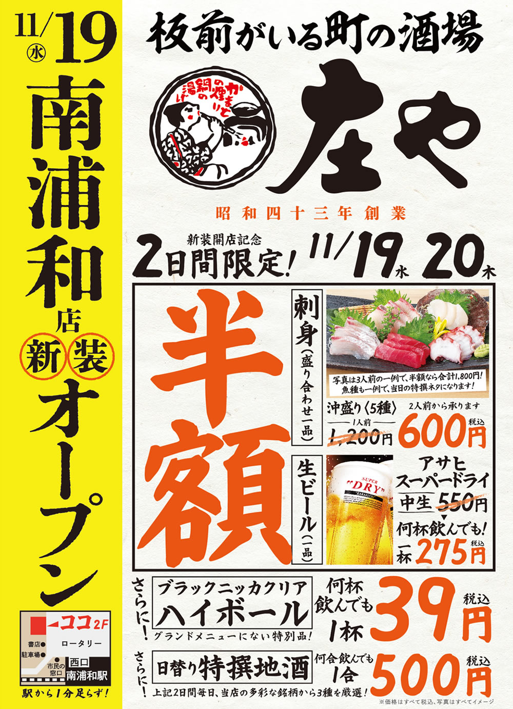 【庄や 南浦和店】11月19日(水)17時より新装開店!