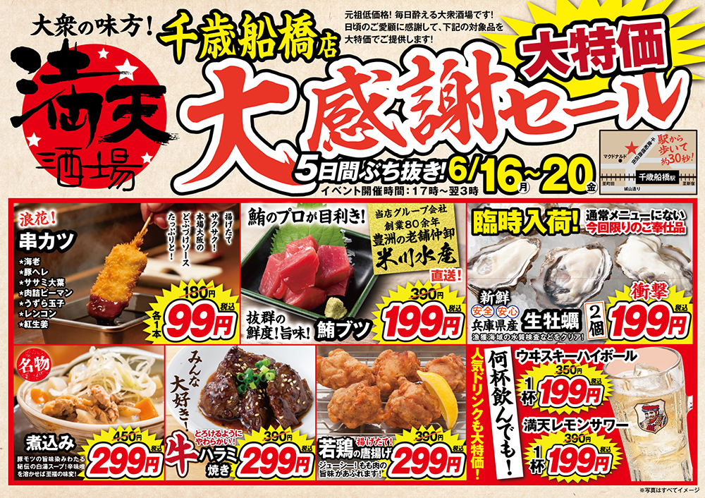 6/16~満天酒場千歳船橋店にて5日間連続大感謝セール開催!