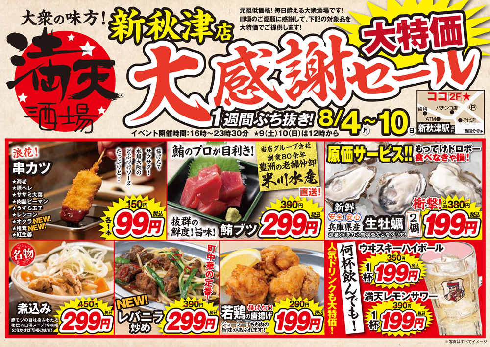 ■実施店舗:満天酒場 新秋津店